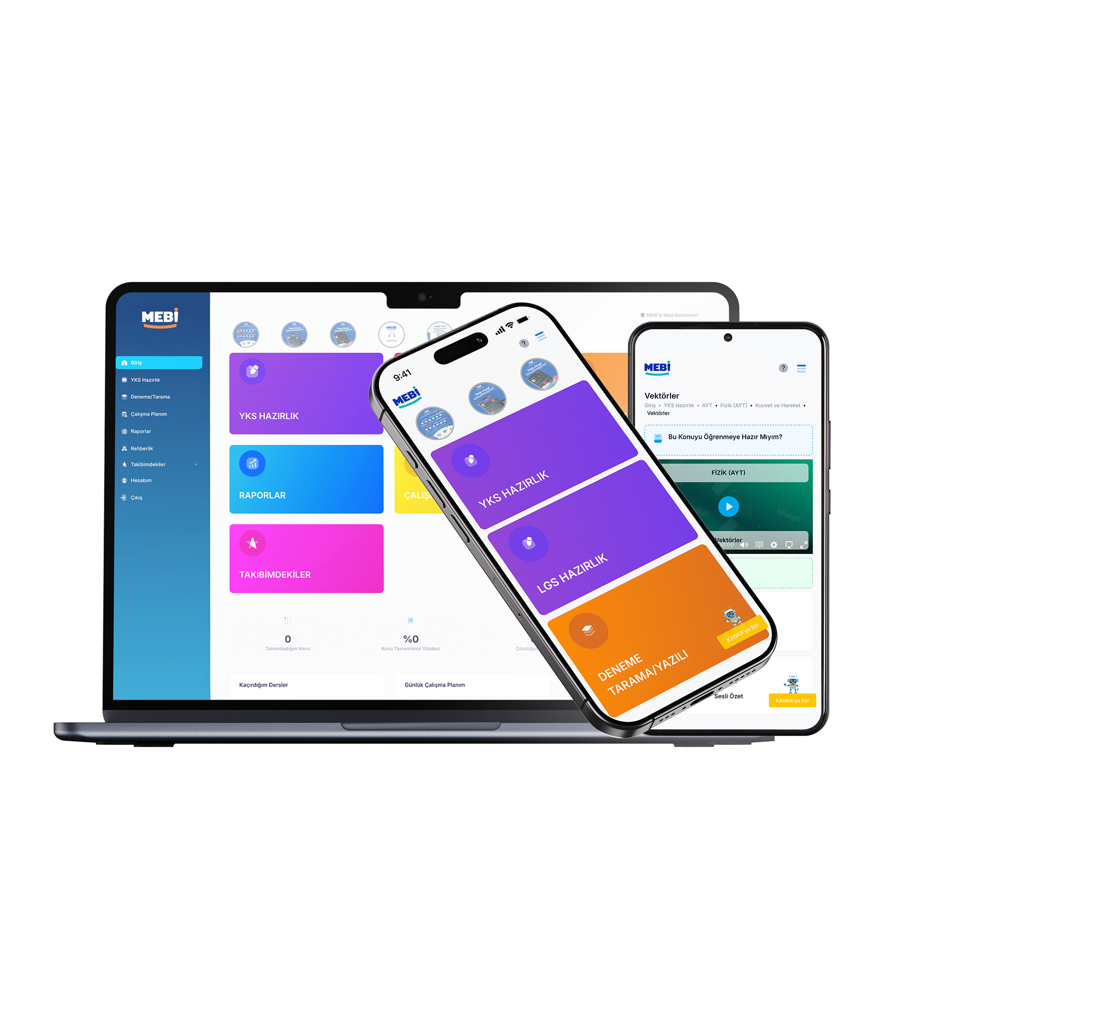 MEBİ; sınav hazırlığından okul derslerine, kişisel planlamadan etkileşimli içeriklere kadar öğrenme sürecinin tüm adımlarını tek platformda sunar.